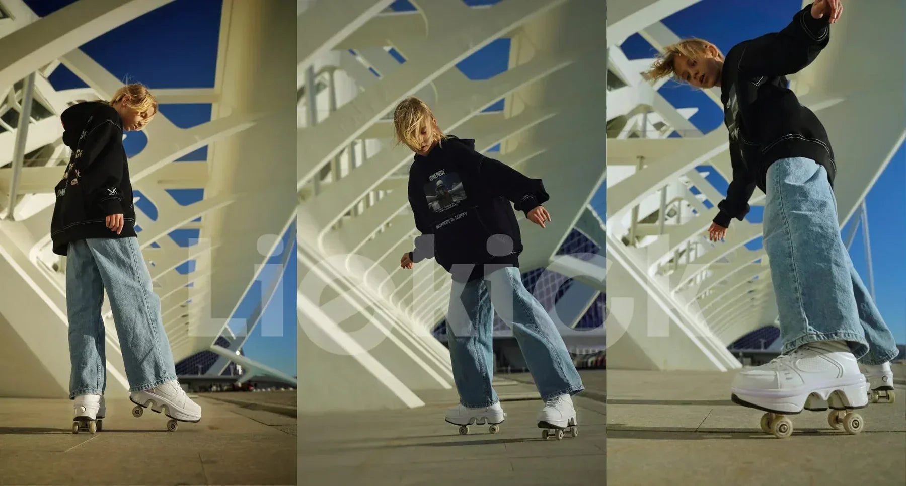 Ayakkabılarını değiştirmeyi unut! Sadece tek bir düğmeye basarak, yürüyüşün tadını çıkarmanı sağlayacak şık spor ayakkabılara ve patenlere sahip olacaksın.