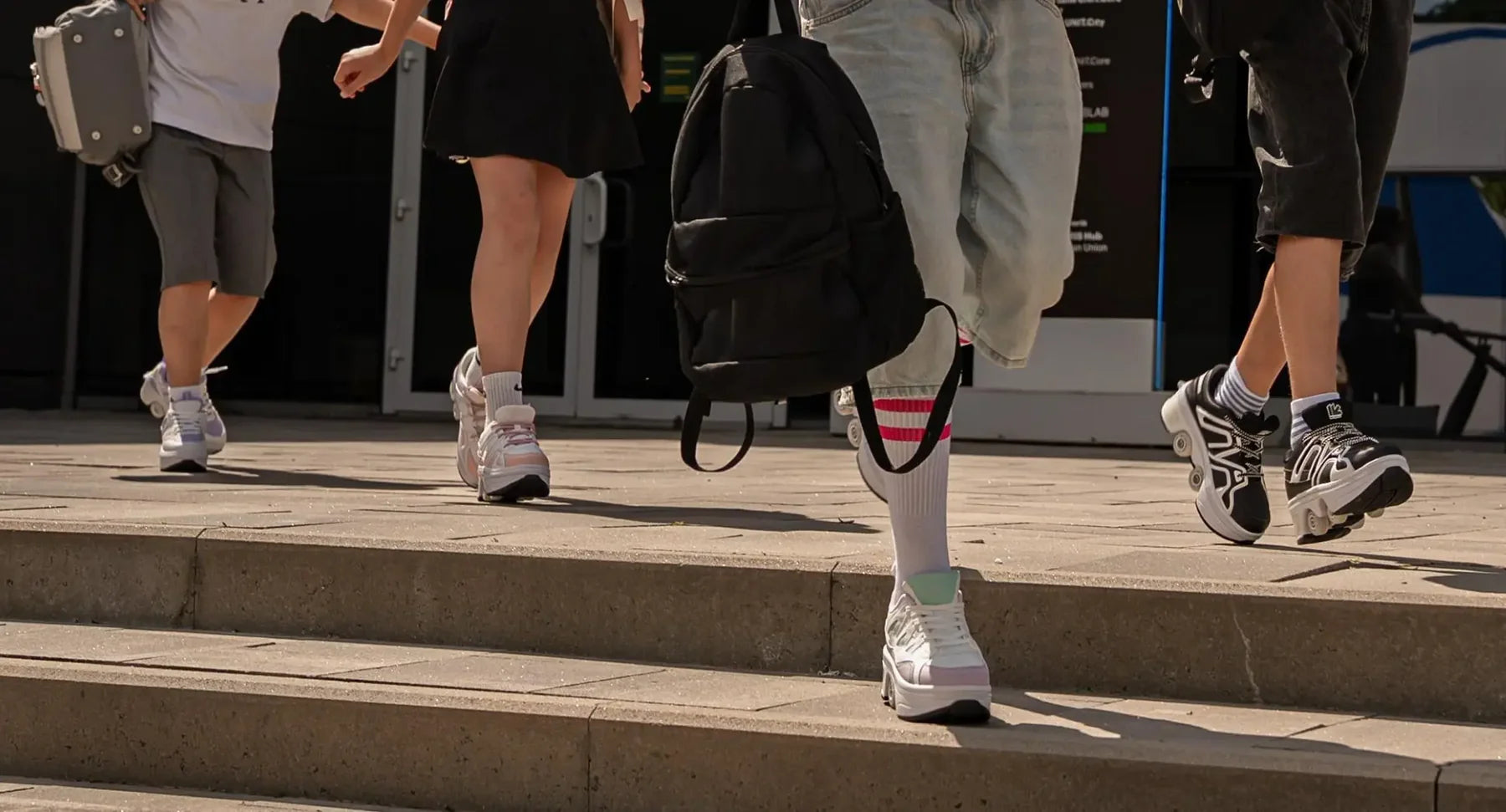 Ayakkabılarını değiştirmeyi unut! Sadece tek bir düğmeye basarak, yürüyüşün tadını çıkarmanı sağlayacak şık spor ayakkabılara ve patenlere sahip olacaksın.